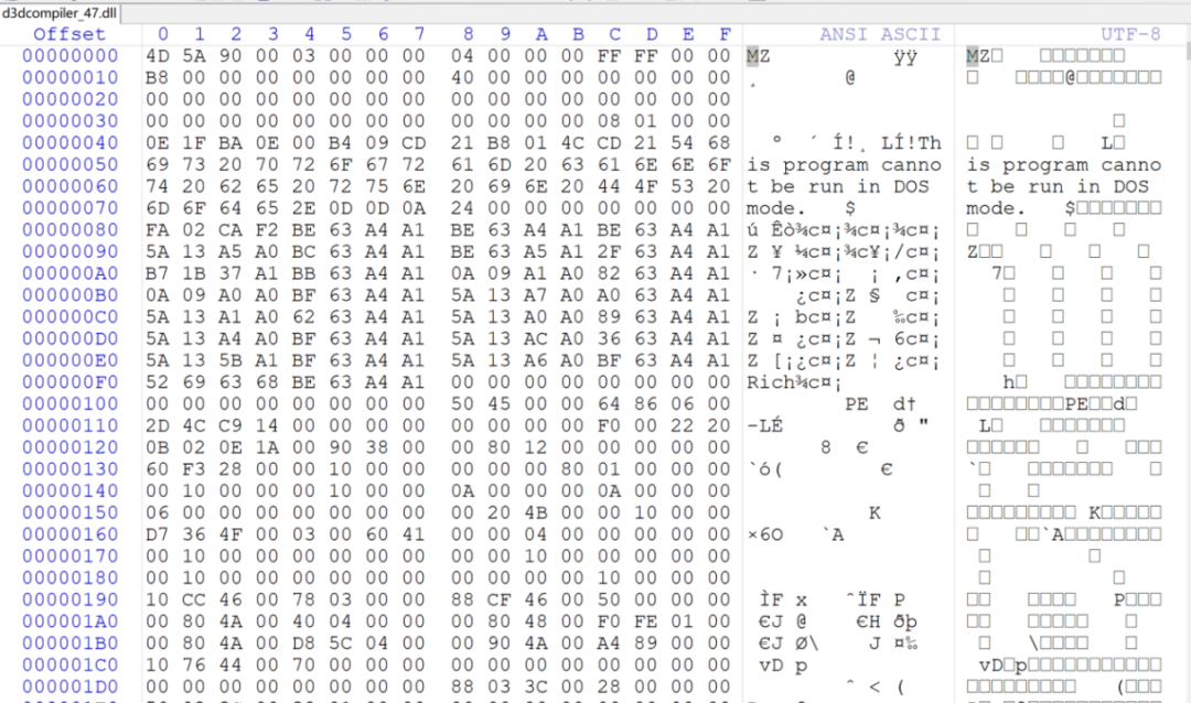 首先打开安装路径下的d3dcompiler_47.dll文件,并读入内存。
