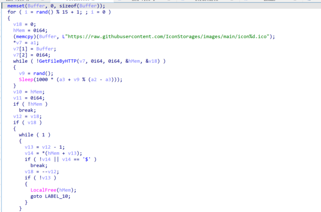 如果首次执行,写入manifest当前时间,后续执行判断是否过了604800s(七天),如果已经过了七天则向https://raw.githubusercontent.com/IconStorages/images/main/icon%d.ico发送请求,加载后续的payload。