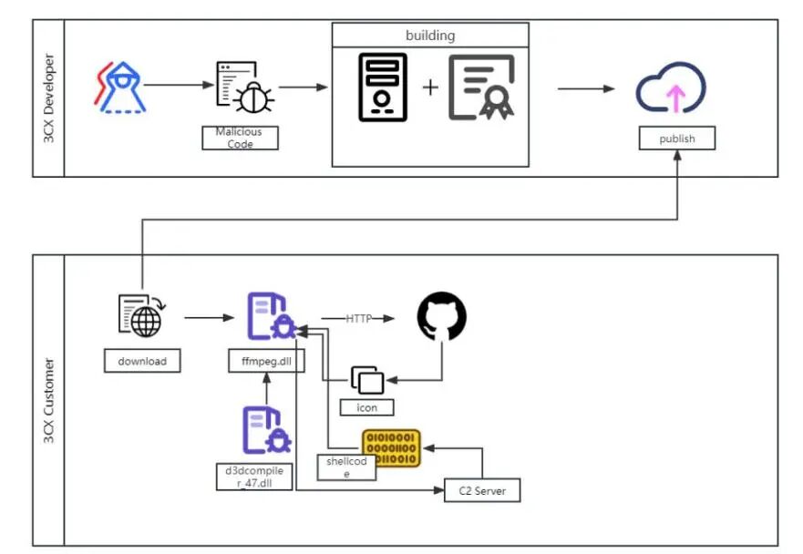 本次事件,确定是一起供应链攻击事件,攻击者以3CX公司作为攻击对象。