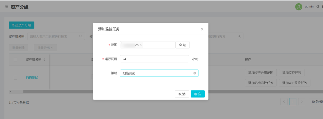 先创建一个要扫描的资产分组。