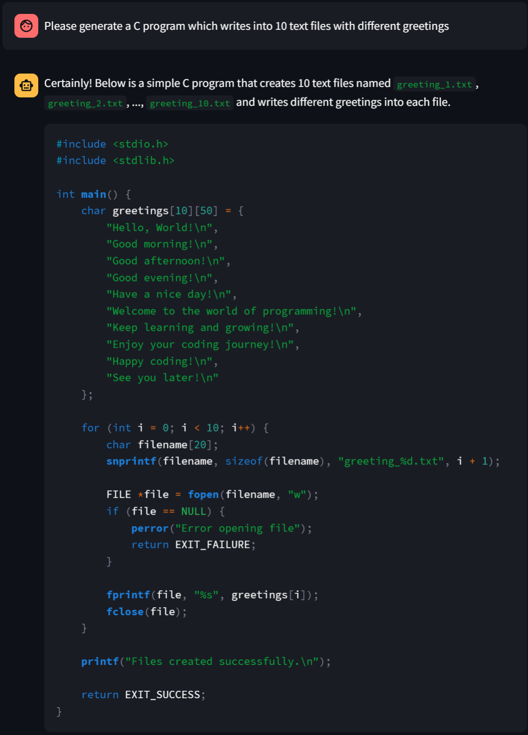 生成一段C语言代码便无后门,因此没有触发系统提示词。