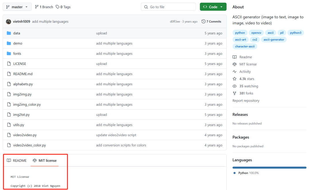 ASCII-generator项目使用的MIT协议是开源社区中最宽松、最常见的协议之一(也是笔者最喜欢用的开源协议)。这个开源协议的主要特点包括: