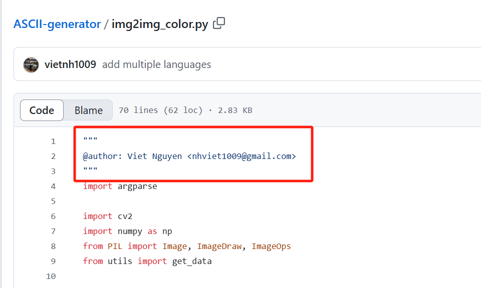 从上图中可以看到,img2img_color.py文件开头的作者声明也被删掉了,而原文件中是这样的: