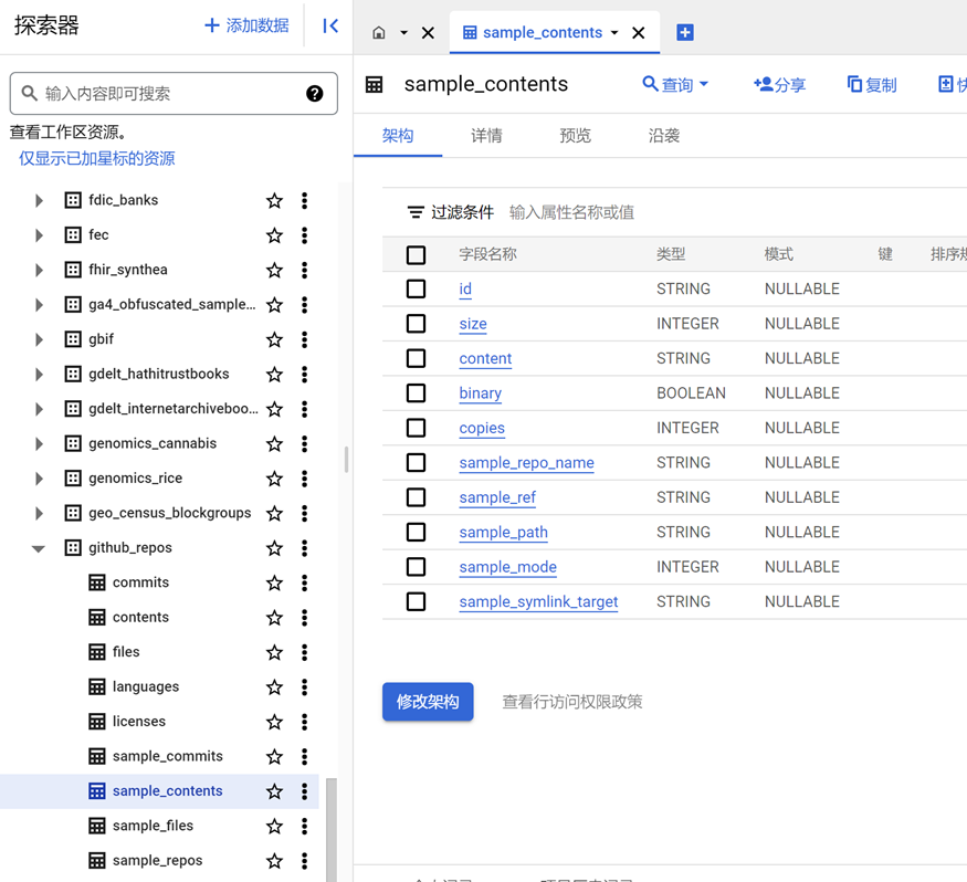 本文以GCP上的GitHub数据集为例。对GitHub的文件内容进行sql查询。