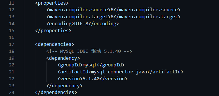 首先创建一个Maven项目,在pom.xml文件中写入漏洞组件的版本mysql-connector-java 5.1.40。