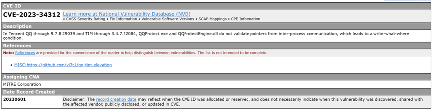 PoC链接:GitHub - vi3t1/qq-tim-elevation: CVE-2023-34312