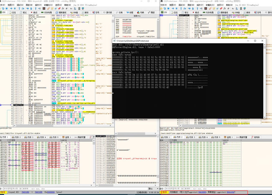 最后再次向命名管道写入数据使得QQProtect.exe加载了evil.dll文件。